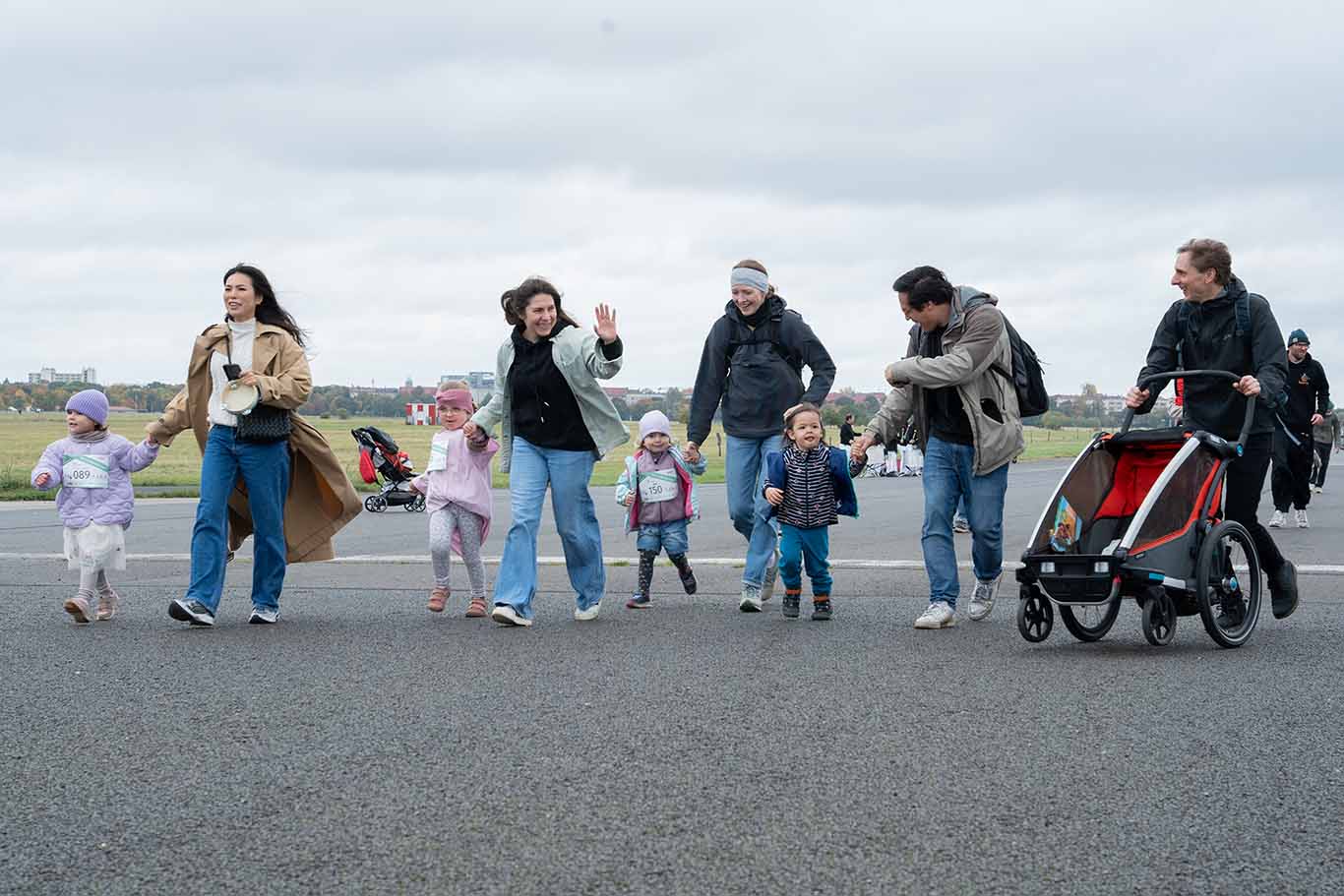 Gruppen von Läuferinnen und Läufern auf dem Tempelhofer Feld in Berlin.