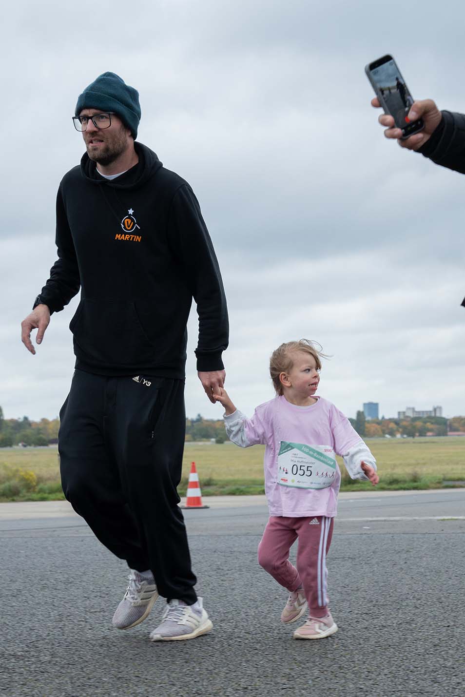 Um 13 Uhr schickte Schirmherr Fabian Drescher dann die letzten Teilnehmenden zu Fuß, im Rollstuhl, im Handbike und teils auch mit Guide oder Begleithund auf die große Runde rings um das Tempelhofer Feld, um die 5- oder 10-Kilometer-Strecke zu absolvieren. Anfangs trug der Rückenwind die Startenden über die Strecke, doch bei einem Rundkurs kommt unweigerlich der Punkt, an dem der Rückenwind zum Gegenwind wird. So gestalteten sich die letzten Kilometer etwas beschwerlicher, und der Wind forderte bei manchem Tribut. Doch je näher man dem Ziel kam, desto größer war die Motivation, die Ziellinie zu erreichen. Am Ende schafften alle die Etappe und konnten sich über die Finisher-Medaille und die wohlverdiente Stärkung mit Obst, Wasser und Traubenzucker freuen.