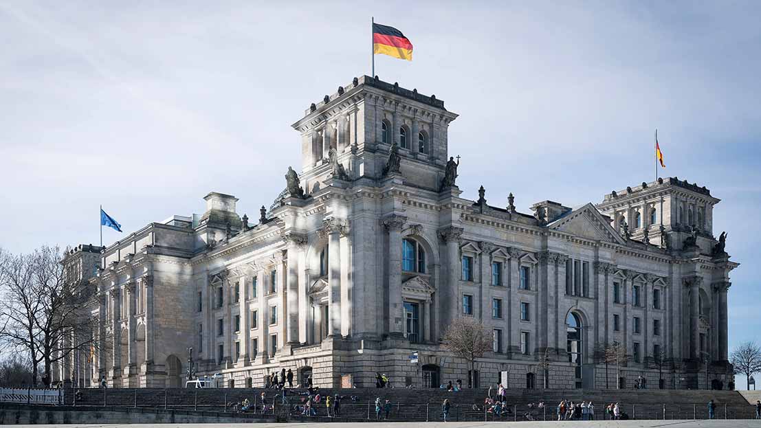 Reichstagsgebäude in Berlin an einem Wintertag.