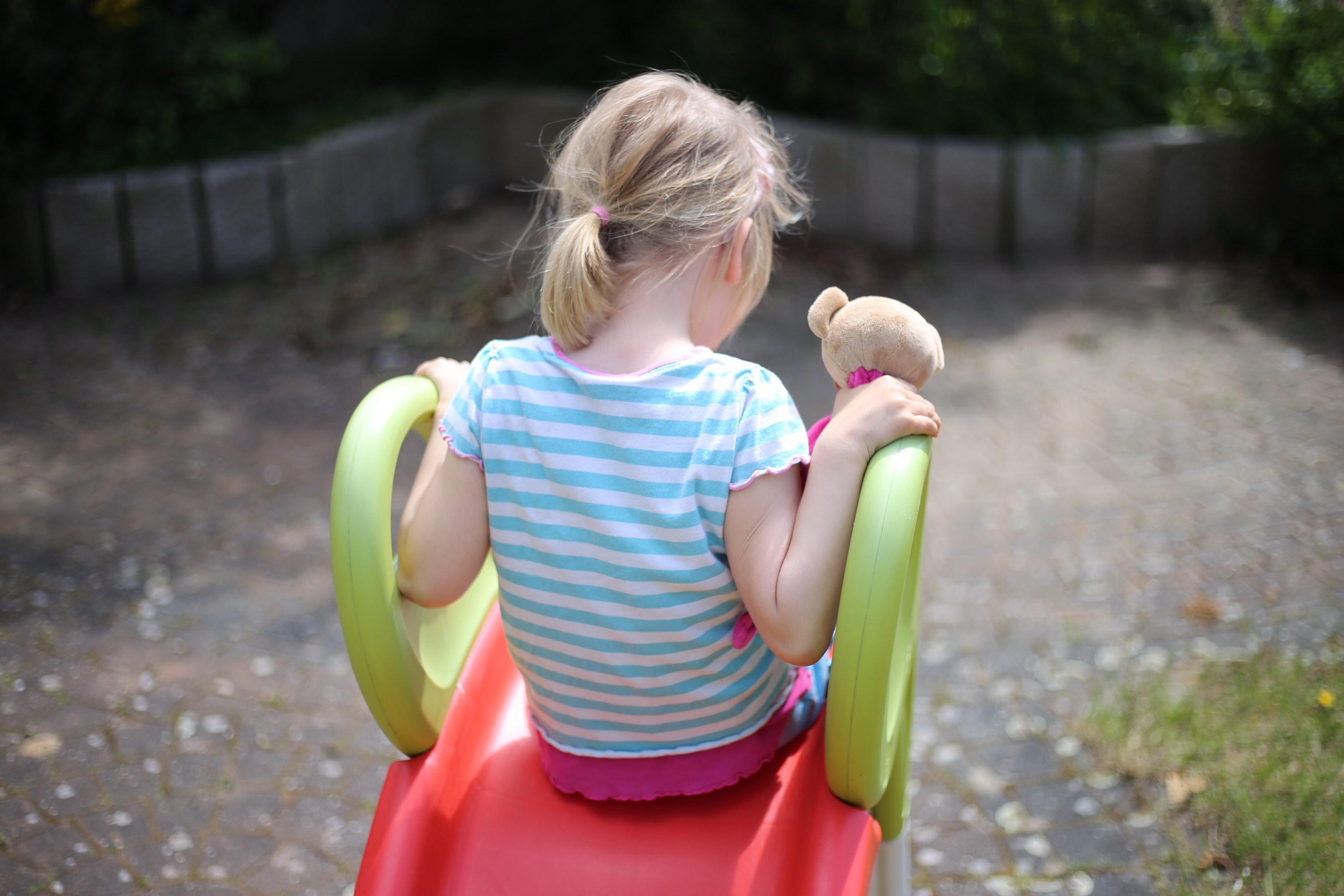 Kind von hinten auf einem Spielgerät.